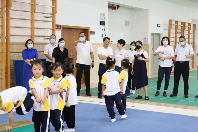 邓建英一行观摩长沙市体操学校幼儿园快乐体操训练