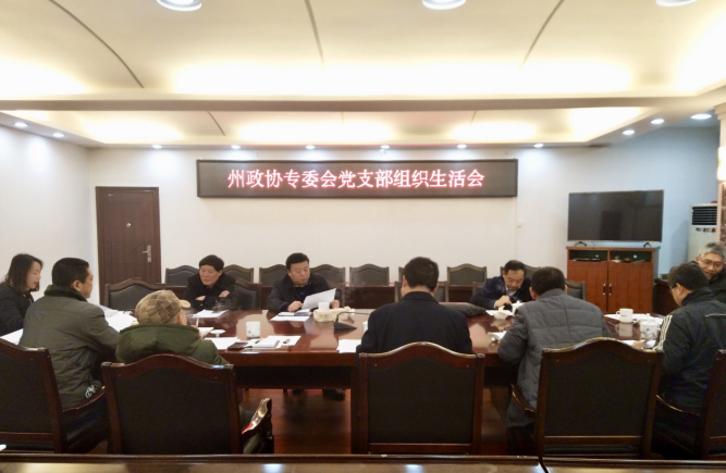 2月20日下午,州政协专委会党支部召开2018年度组织生活会。州政协党组成员宋清宏、向顶天、龙春生3位同志以普通党员的身份参加了组织生活会。