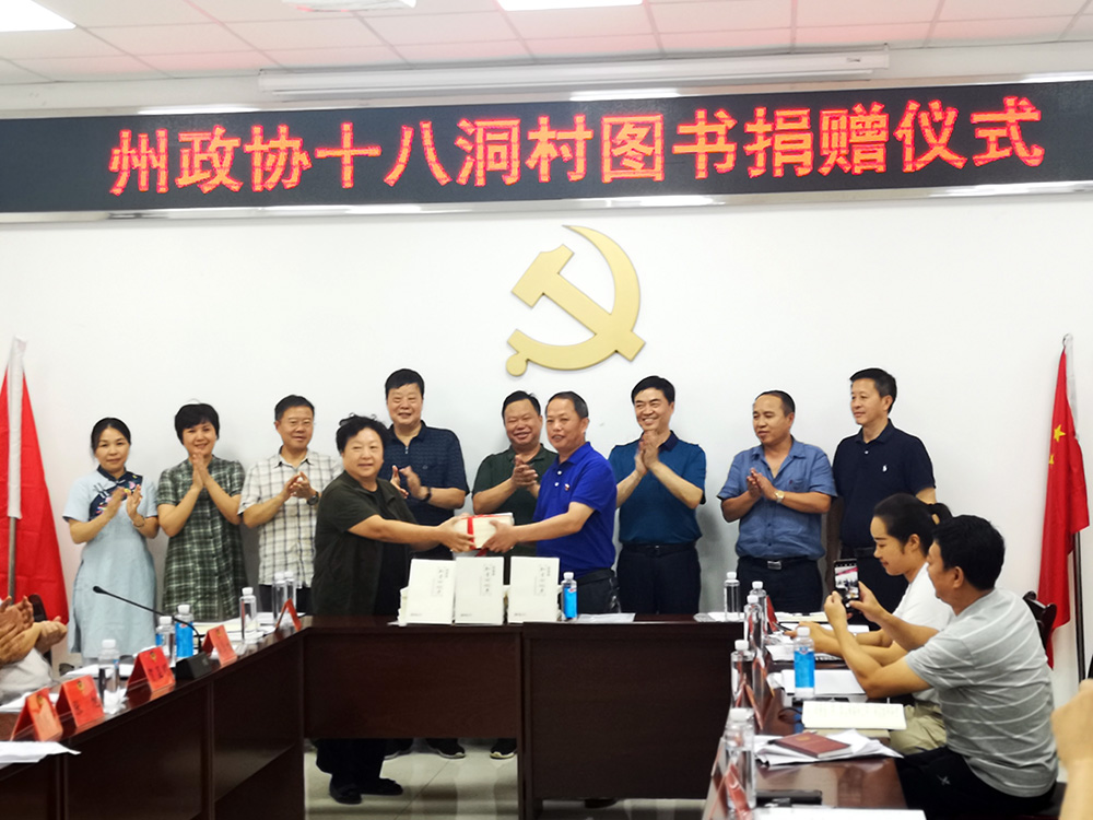 捐献仪式上,张旭代表州政协为十八洞村捐献了图书,参与捐献仪式的相关领导进行了合影留念。贾高飞勉励与会人员和十八洞村民发扬知青奋斗精神、发扬十八洞精神,更好推进十八洞村、花垣县乃至湘西州的精准扶贫和乡村振兴工作。