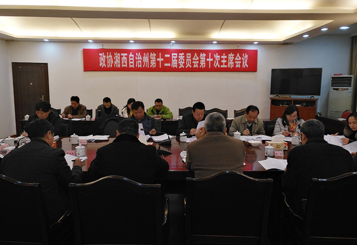 本网讯(记者 唐 庆)12月18日上午,州政协十二届十次主席会议在吉首召开。州政协主席刘昌刚主持会议,州政协副主席贾高飞、宋清宏、向顶天、龙春生、石红,秘书长张旭参加会议。