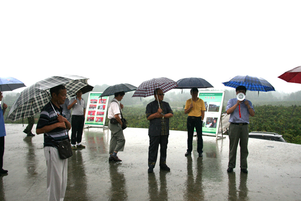 图为考察组一行视察花垣县十八洞苗汉子精品猕猴桃基地