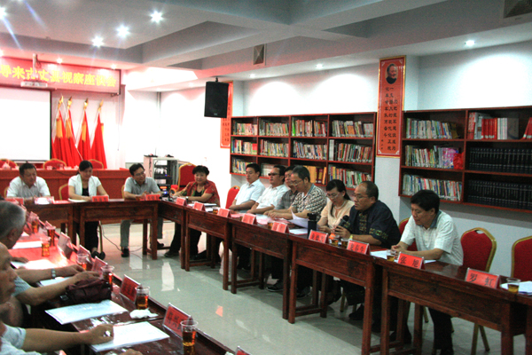 图为视察组一行在古丈县默戎镇毛坪村村部会议室召开座谈会